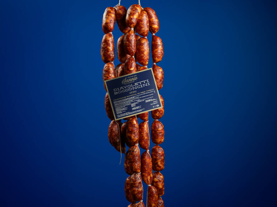 Salame prodotto con carne suina origine UE. Il prodotto è stagionato secondo tradizione in ambiente controllato. Il salame presenta un gusto intenso, speziato e aromatizzato, facendo ricordare i sapori della città di Napoli. Insaccato in budello naturale. Colore rosso brillante (parte magra) e bianco perlaceo (parte grassa). Confezionato sfuso o sottovuoto o atm (atmosfera modificata) in conformità alle normative vigenti.