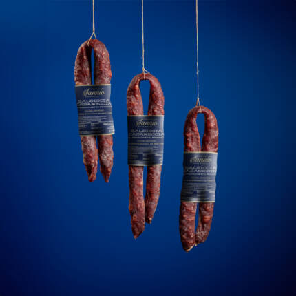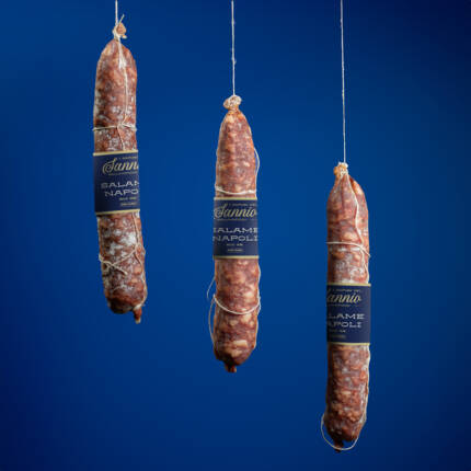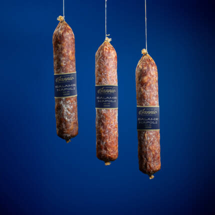 Il salumificio I Sapori del Sannio della famiglia Pezzella utilizza carni, accuratamente selezionate presso prestigiosi allevamenti italiani, controllate da uno scrupoloso staff veterinario interno, prima di essere lavorate in produzione.